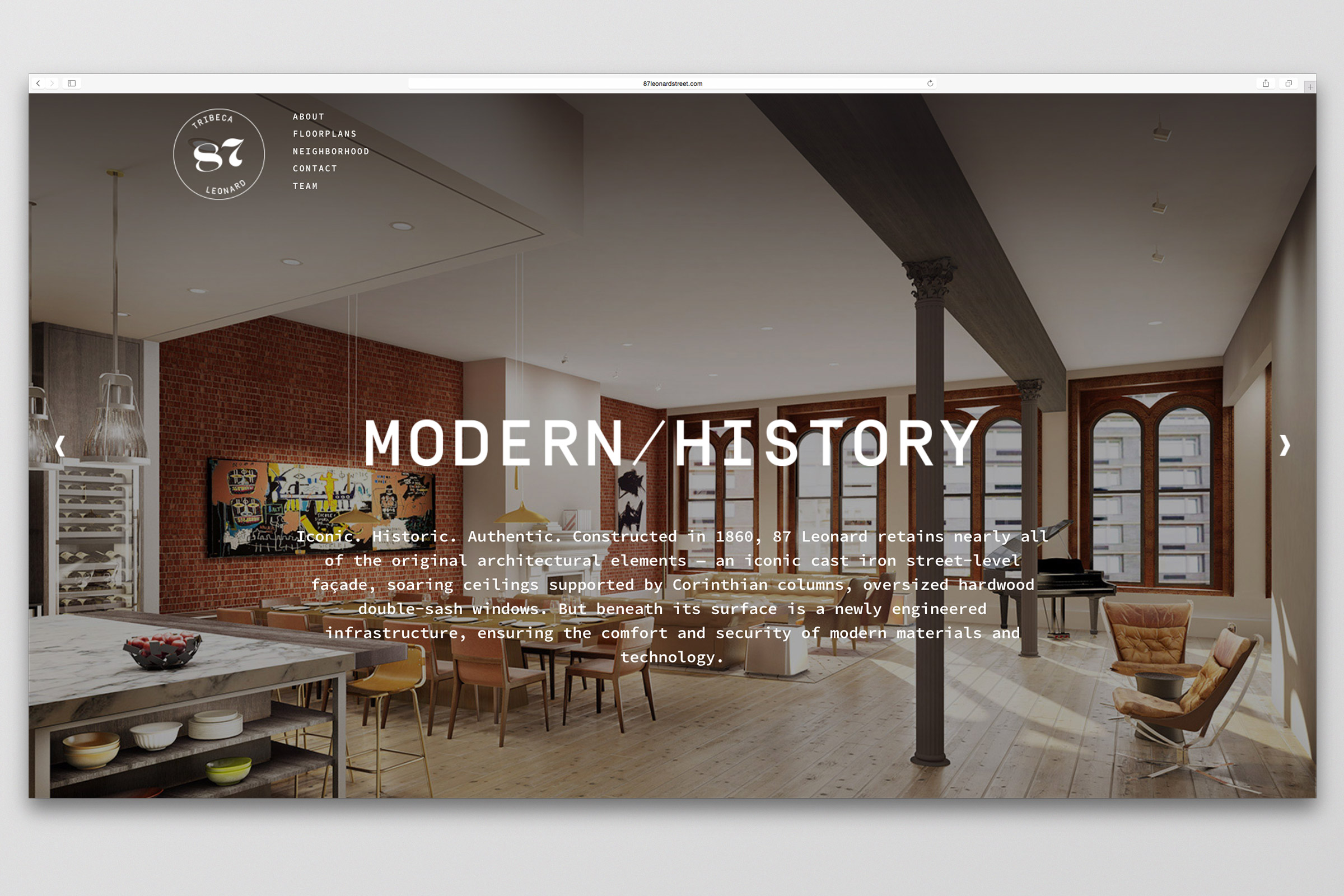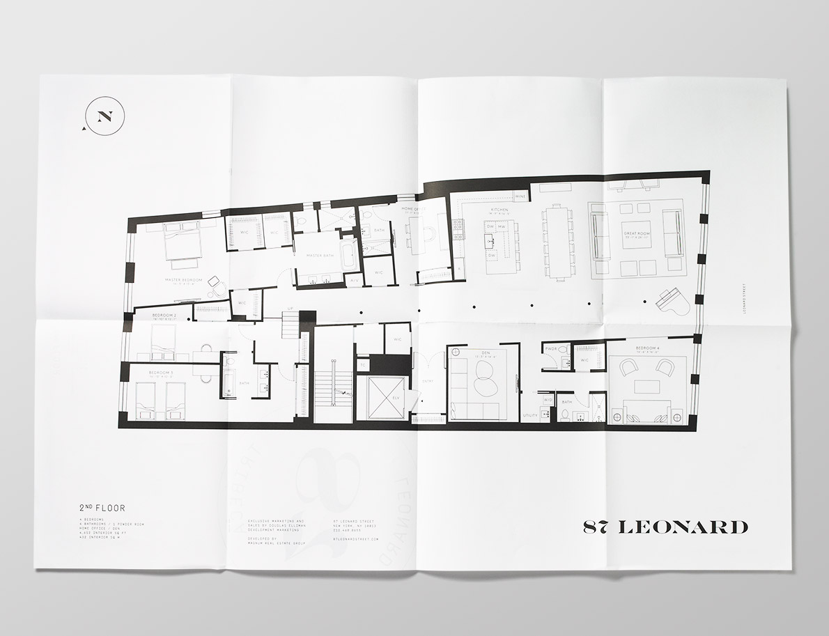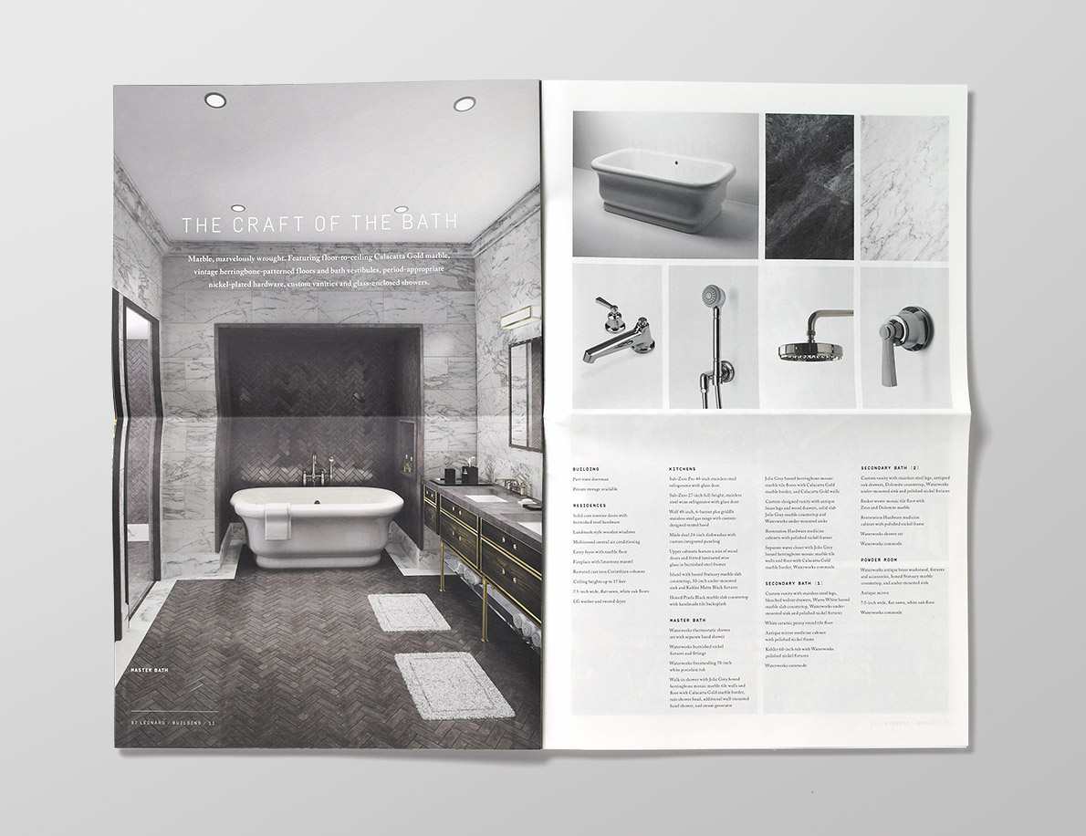 Branding, collateral, and sales center displays for the residential condominium conversion development in the Tribeca neighborhood of Manhattan.