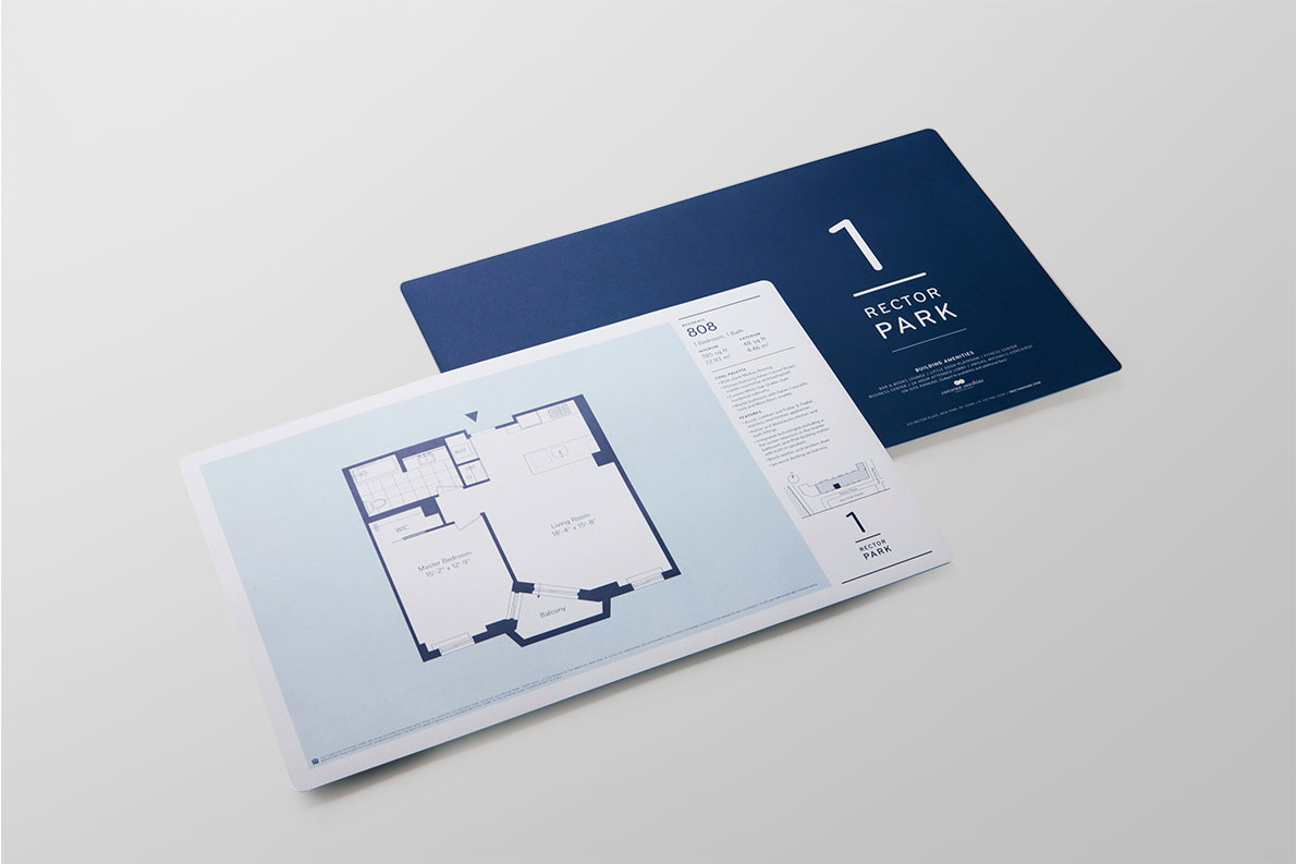 Branding, collateral, and sales center displays for the condominium conversion development in the Battery Park neighborhood of Manhattan.