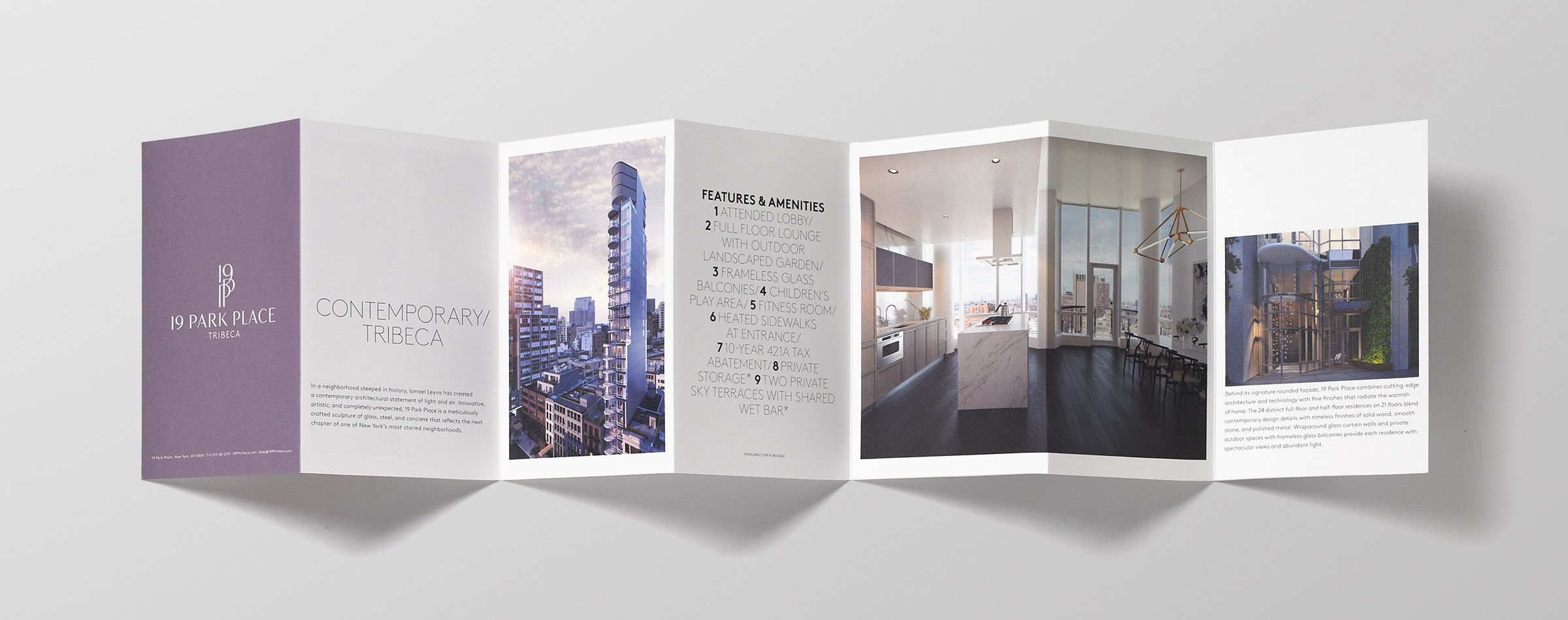 Branding, collateral, and sales center displays for the new residential condominium development in the Tribeca neighborhood of Manhattan.