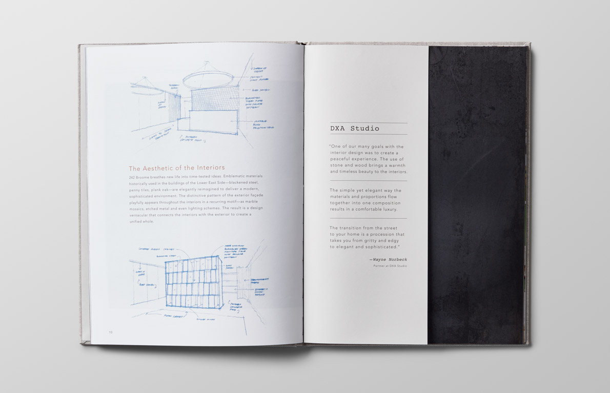 Branding, collateral, and sales center displays for the new construction, residential condominium development in the Lower East Side neighborhood of Manhattan.
