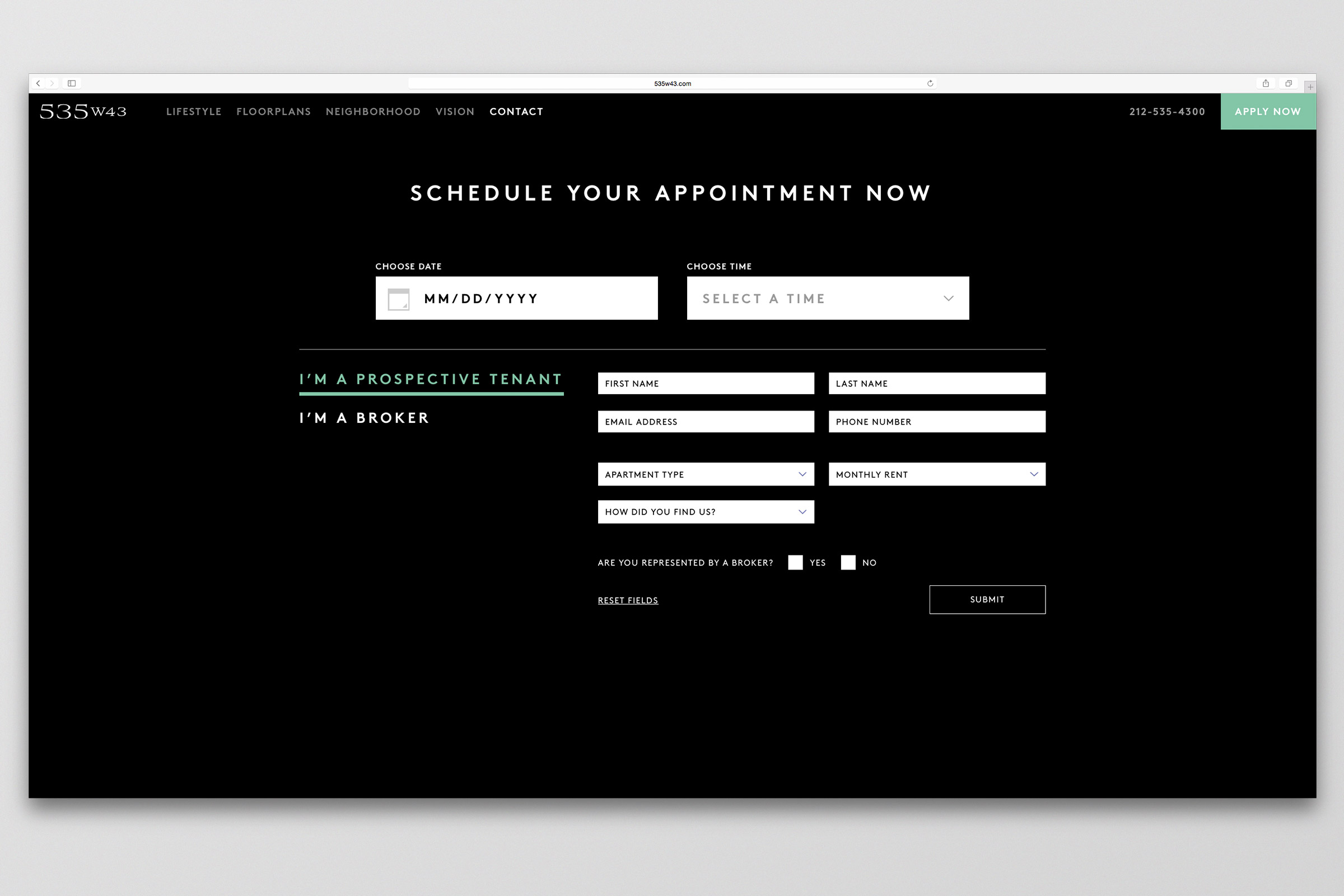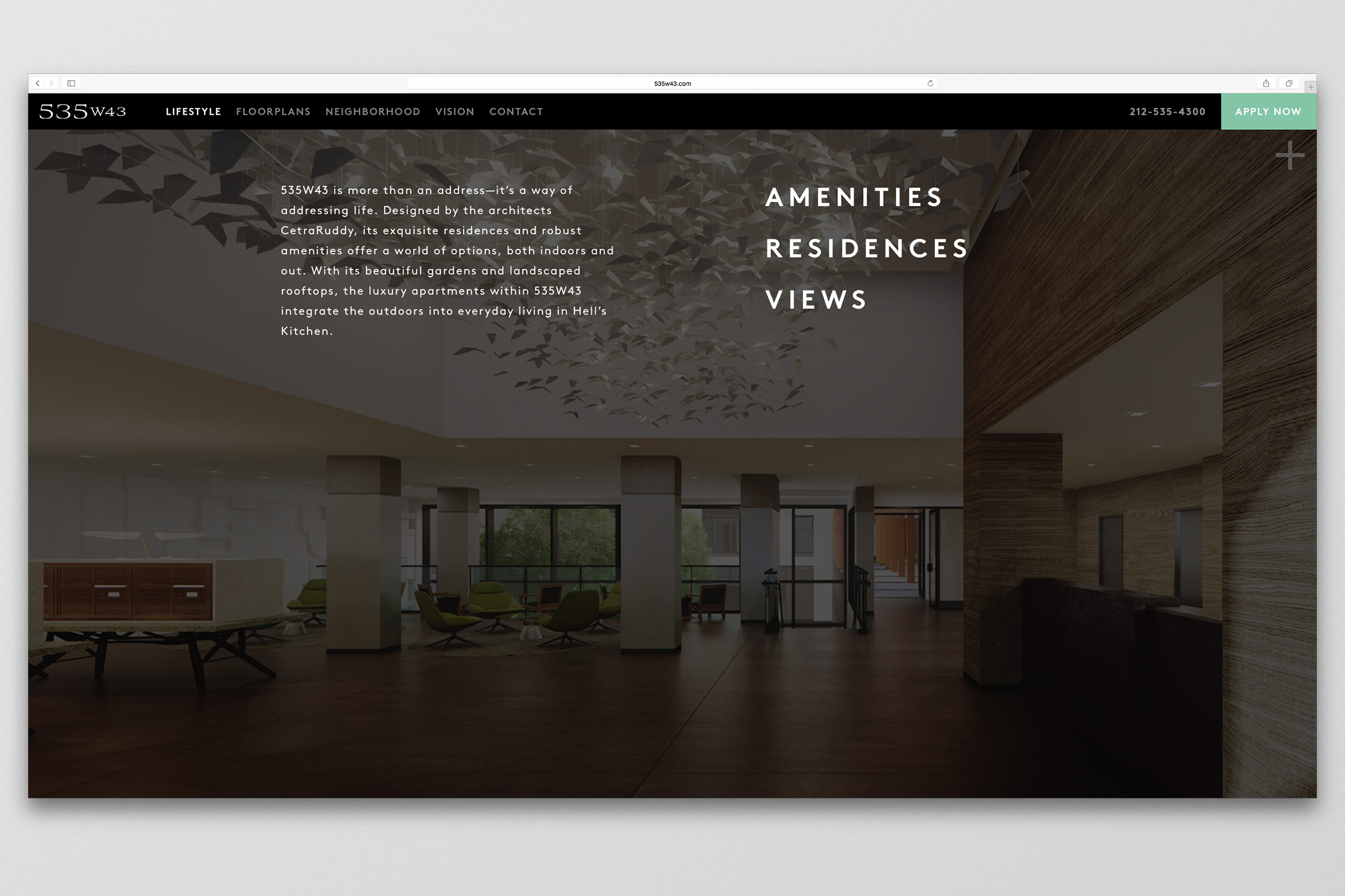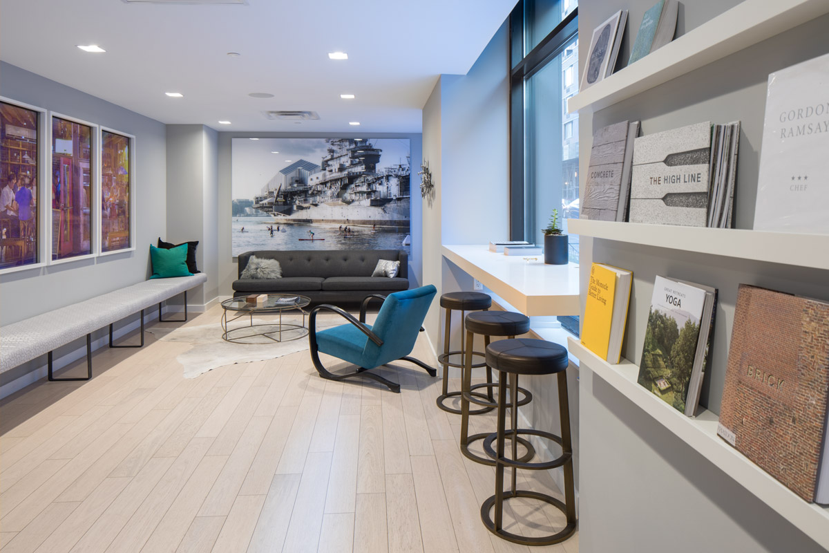 Branding, collateral, and leasing center design for the new construction residential rental development in the Hell’s Kitchen neighborhood of Manhattan.