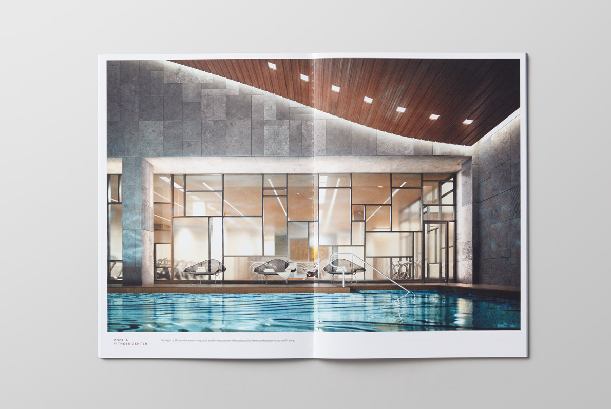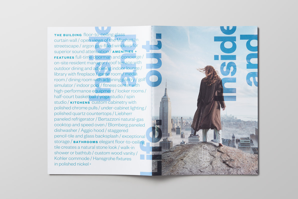 Branding, collateral, and leasing center displays for the new residential rental development in the NoMad neighborhood of Manhattan.