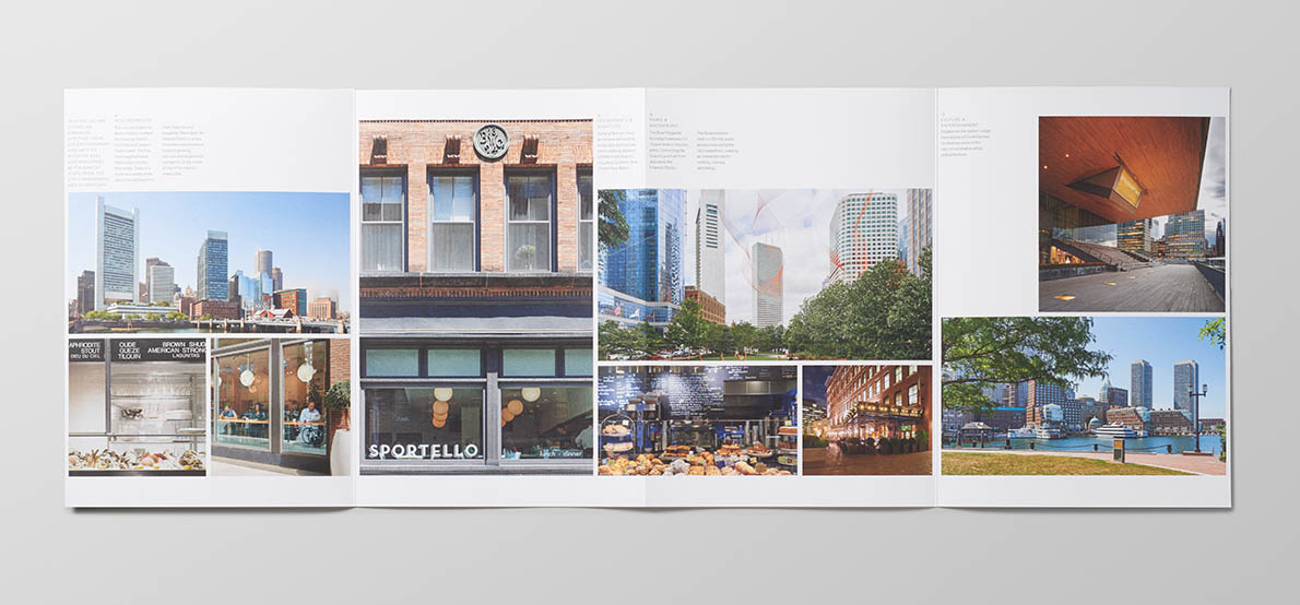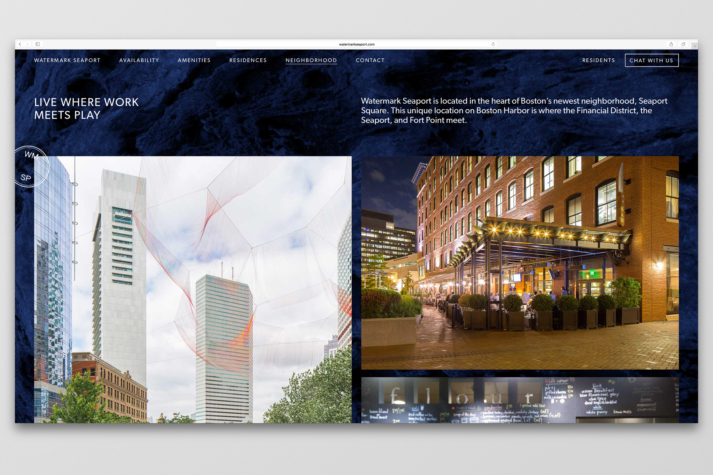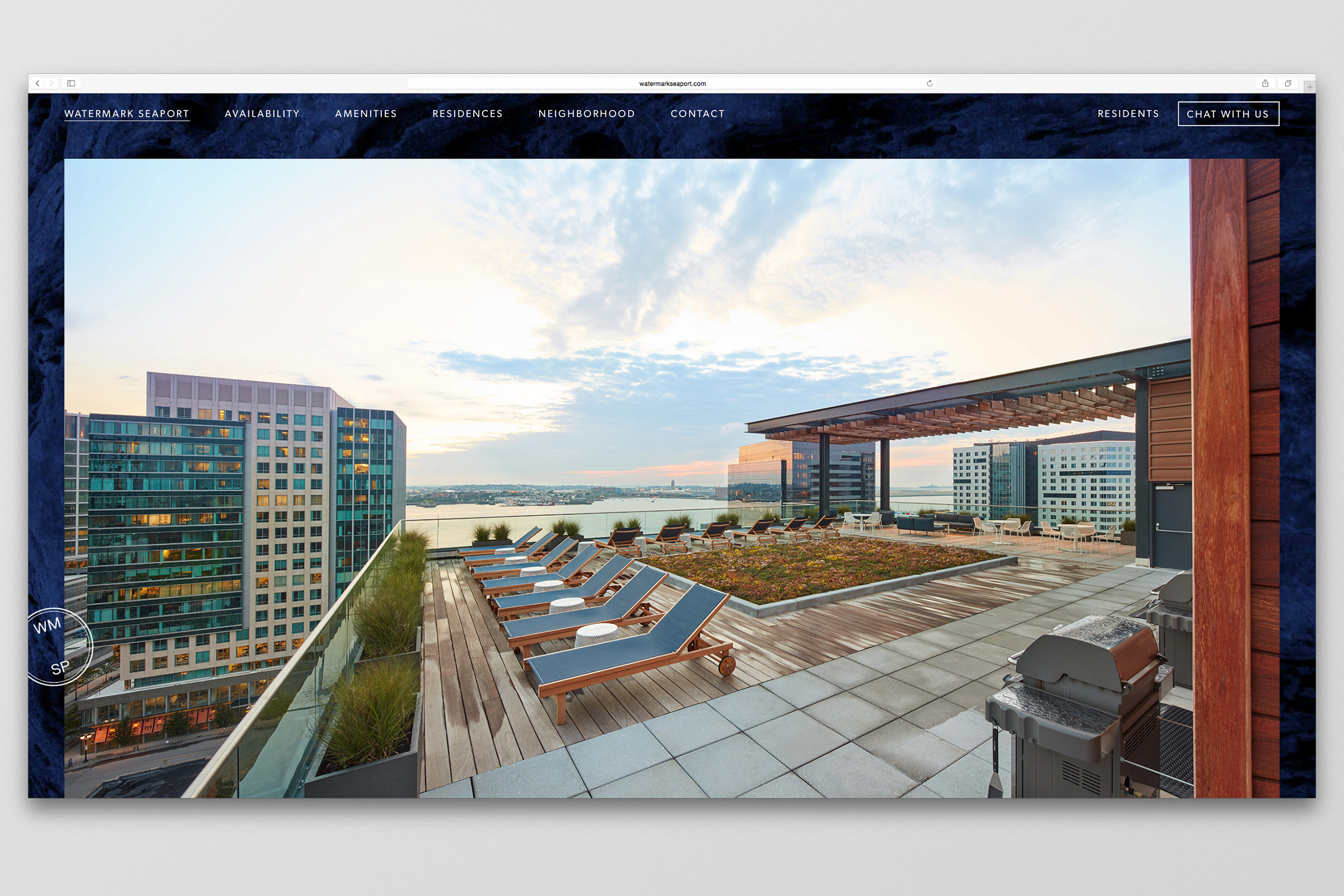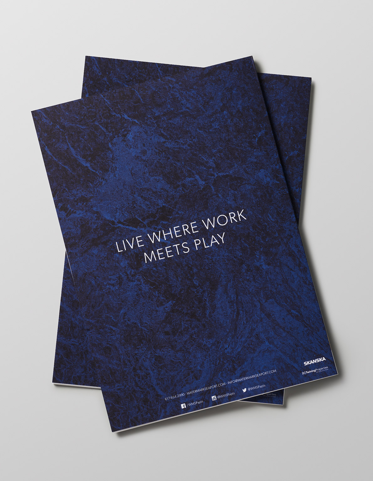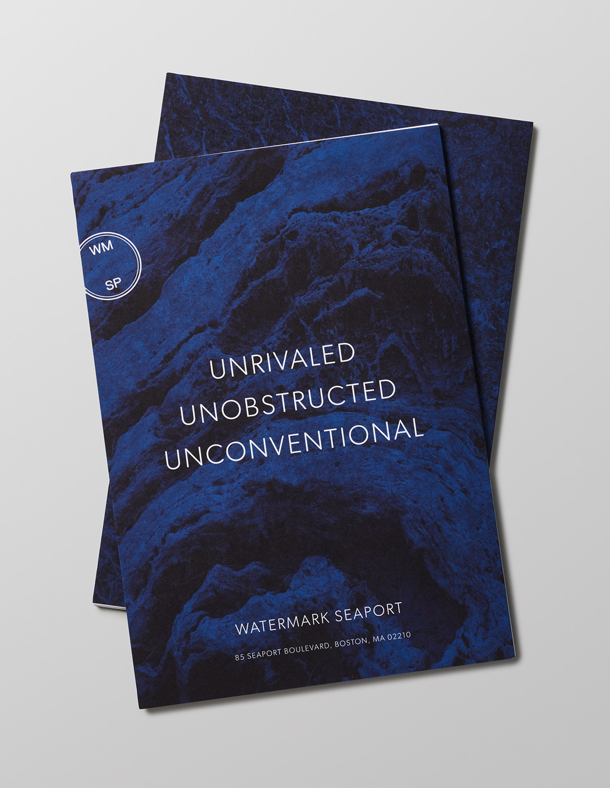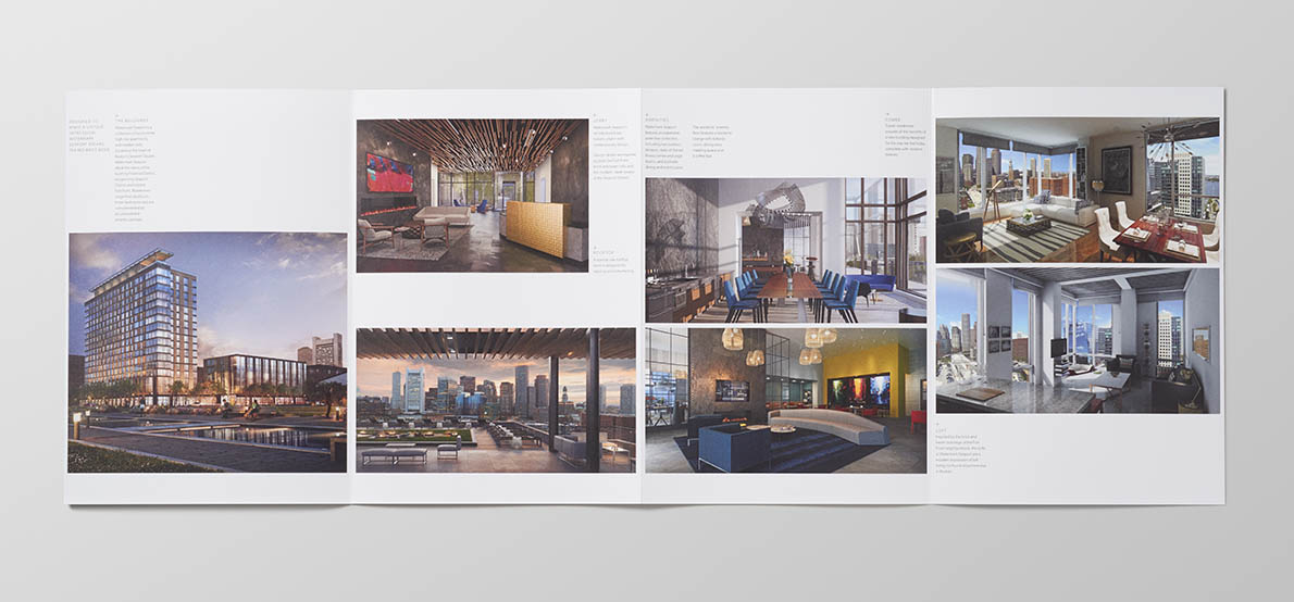 Branding, collateral, and leasing center displays for the new residential rental development in the Seaport Square neighborhood of Boston.